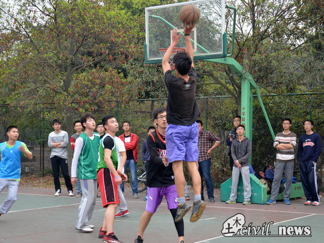 “绽放青春”篮球赛在南区篮球场进行了初赛的第二场比赛。
