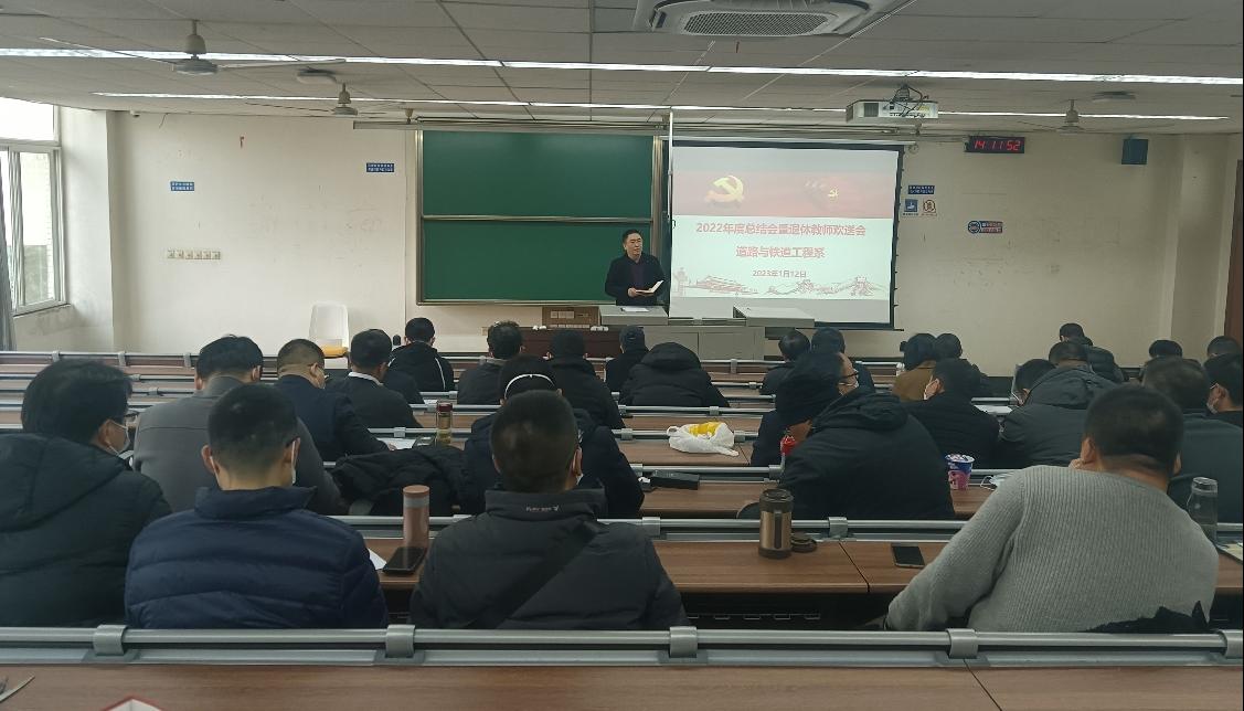 2023年1月12日下午,道路与铁道工程系全体教职员工,在学校九里校区逸夫馆4323教室,成功召开了2022年度总结会暨退休教师欢送会,参加本次会议的还有两位刚刚退休的易思蓉教授和李远富教授。