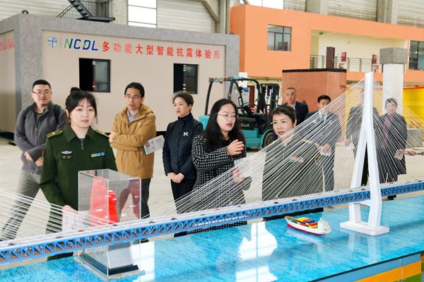 在调研环节,来访单位参观了“红土”思政文化长廊、“五老四少”雕塑群、竢实扬华文化墙以及智慧教室、数字化教学平台、陆地交通地质灾害防治技术国家工程研究中心、铁路机车博物馆等思政育人场地。