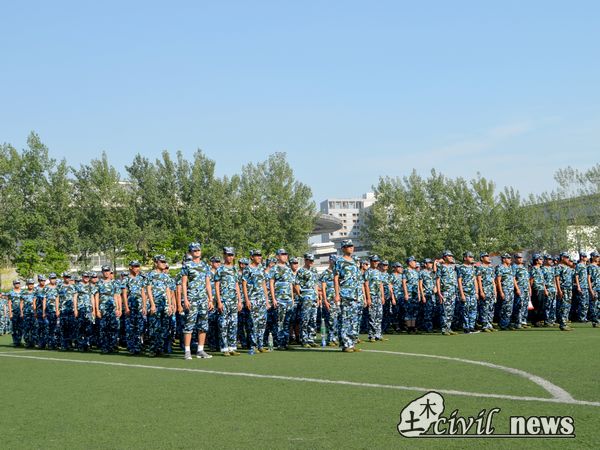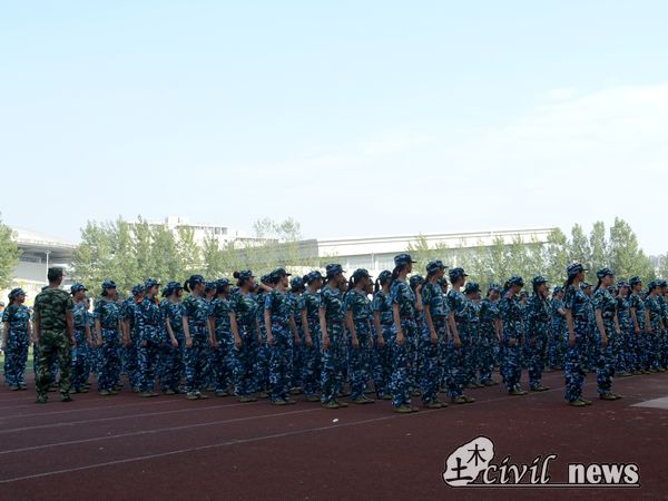 早餐过后,便开始了一天正式的军训。在教官的带领下,他们重复着一个个简单而又复杂的动作,稍息立正,虽枯燥却书写态度。骄阳当头,地面上倒影着一排排整齐的影子,虽然汗水顺着脸颊流下,可同学们依旧以饱满的精神接受着烈日的考验。跨立敬礼,虽简单却彰显敬意。“摘帽!”在教官的一声令下,同学们便以最快的速度将帽子从头上取下,唯恐慢了一步而影响整体的美感。“敬礼!”又是一声令下,他们便以军人的姿态向正前方敬礼。正步前进也是军训中不可或缺的成分,从开始的参差不齐到后来的整齐划一,其中无不包含了同学们的汗水与激情。虽有些许疲惫,但累中有刚毅。教官虽然严格要求,但当有同学出现身体不适时,他们也会悉心的关心与问候。值得一提的是,收操的哨声对于军训的同学来说可称的上是天籁之音,这时他们可以稍作休息迎接下一轮的训练。