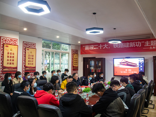 老、中、青三代铁路建设工作者的经历开展。通过学习聆听三位不同时代杰出校友的铁路故事,鼓励全体学生党员与入党积极分子学习忠诚信仰,学习责任担当,学习奋斗动力,以新时代土木青年的姿态面向未来,以实际行动迎接党的二十大胜利召开。