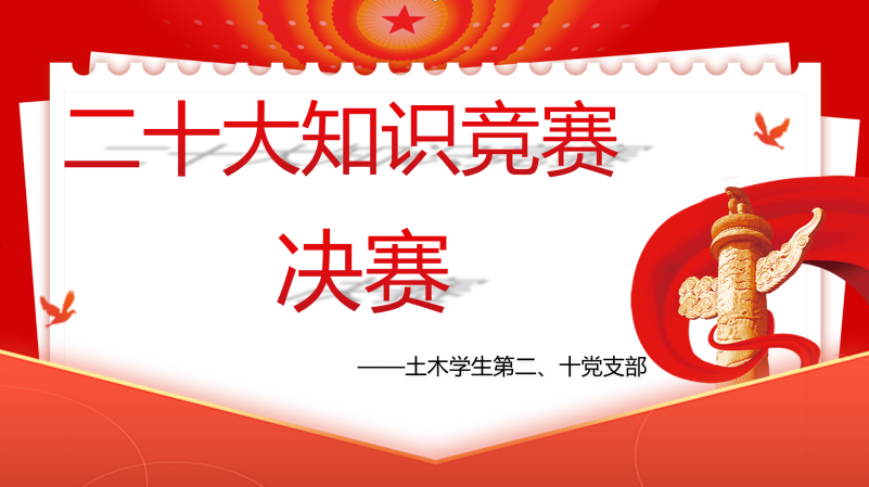 为持续深化落实习近平总书记对广大青年重要指示精神,切实把支部党员的思想和行动与党的二十大相统一,2022年12月8日下午15:00土木学生第二党支部和土木学生第十党支部联合开展了“青春献礼二十大,奋进担当向未来”专题学习暨知识竞赛活动,土木学生第二、十党支部全体党员同志参与了此次活动。