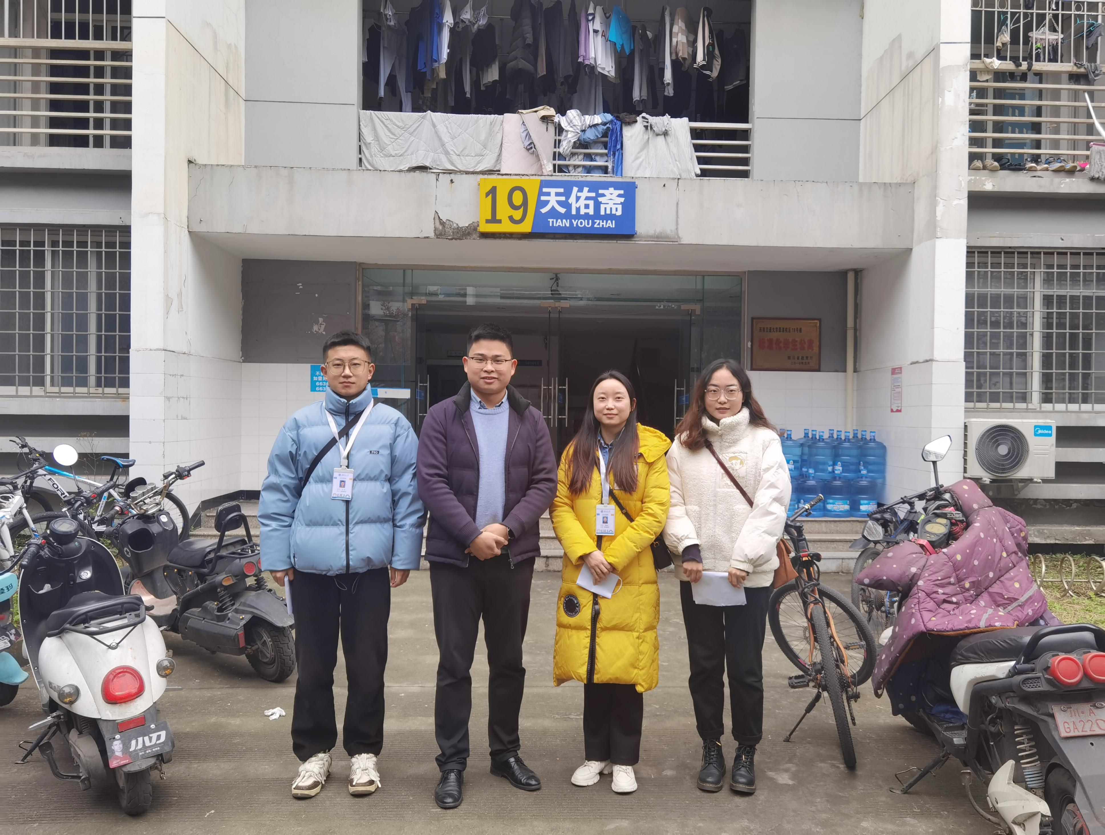 2022级辅导员李裕、雷晓鸣、李策、柯妍一行前往学生寝室进行查寝活动。此次查寝旨在关心学生的考试状态、情绪,缓解学生的考试压力,与学生交流,拉进与学生的距离。