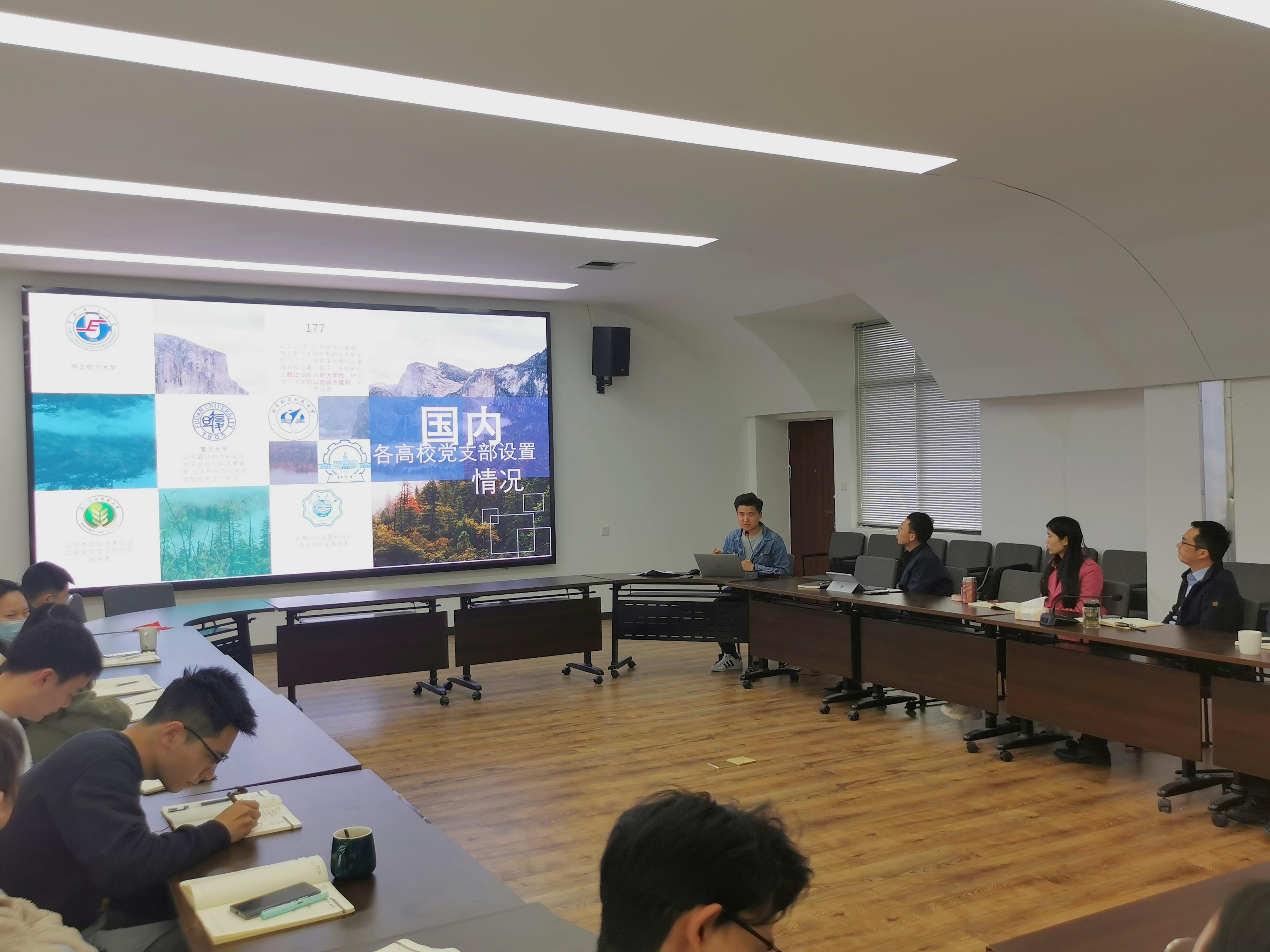 首先,雷晓鸣老师基于学院本科生党员发展、党总支建设思考等方面进行了本科党建工作情况汇报,并从建立党支部人员信息库、优化党员发展细则等四个方面提出建议。强博文老师介绍研究生党建工作情况,从党建现状、其他学院的特色做法、工作思考等三个方面展开。