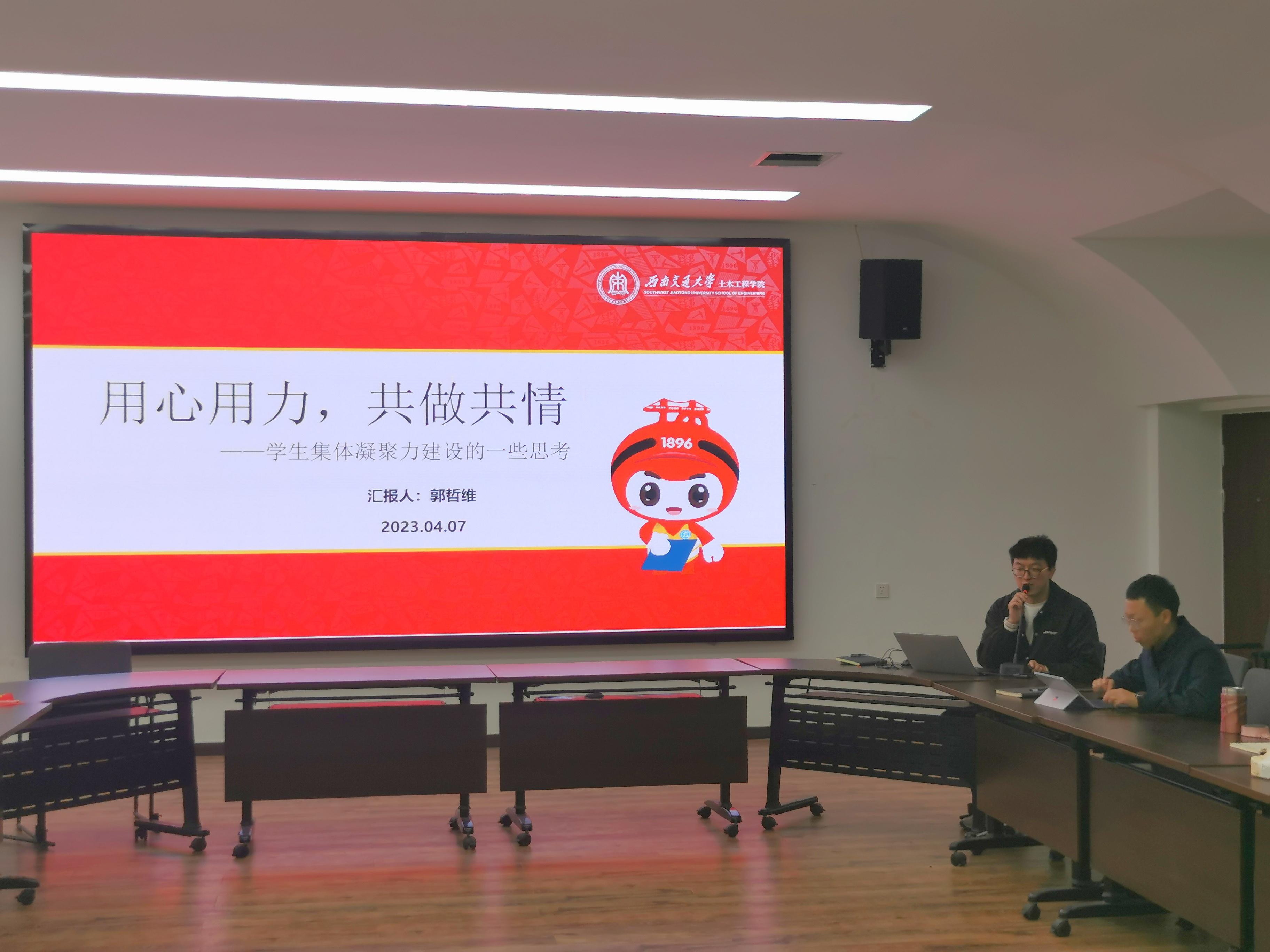 随后,刘楠枫老师分享了他对学生安全工作的思考,从消防、生命安全、信息诈骗等角度进行了案列分享,并提出了自己后续工作的规划;郭哲维老师从集体凝聚力建设、今后工作思考等方面进行分享,提到了“用心用力,共做共情”的学生工作态度。