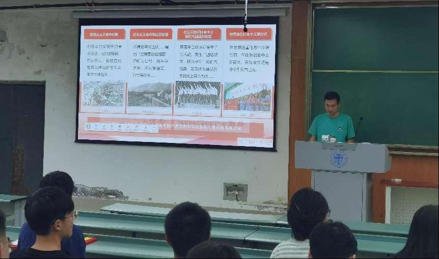 犀浦校区X4350教室,土木学生第一、二、三党支部党员同志们整齐端坐,大家专注地聆听土木学生第二党支部书记张铭煊主持“习近平总书记与大学生在一起”主题党日活动。