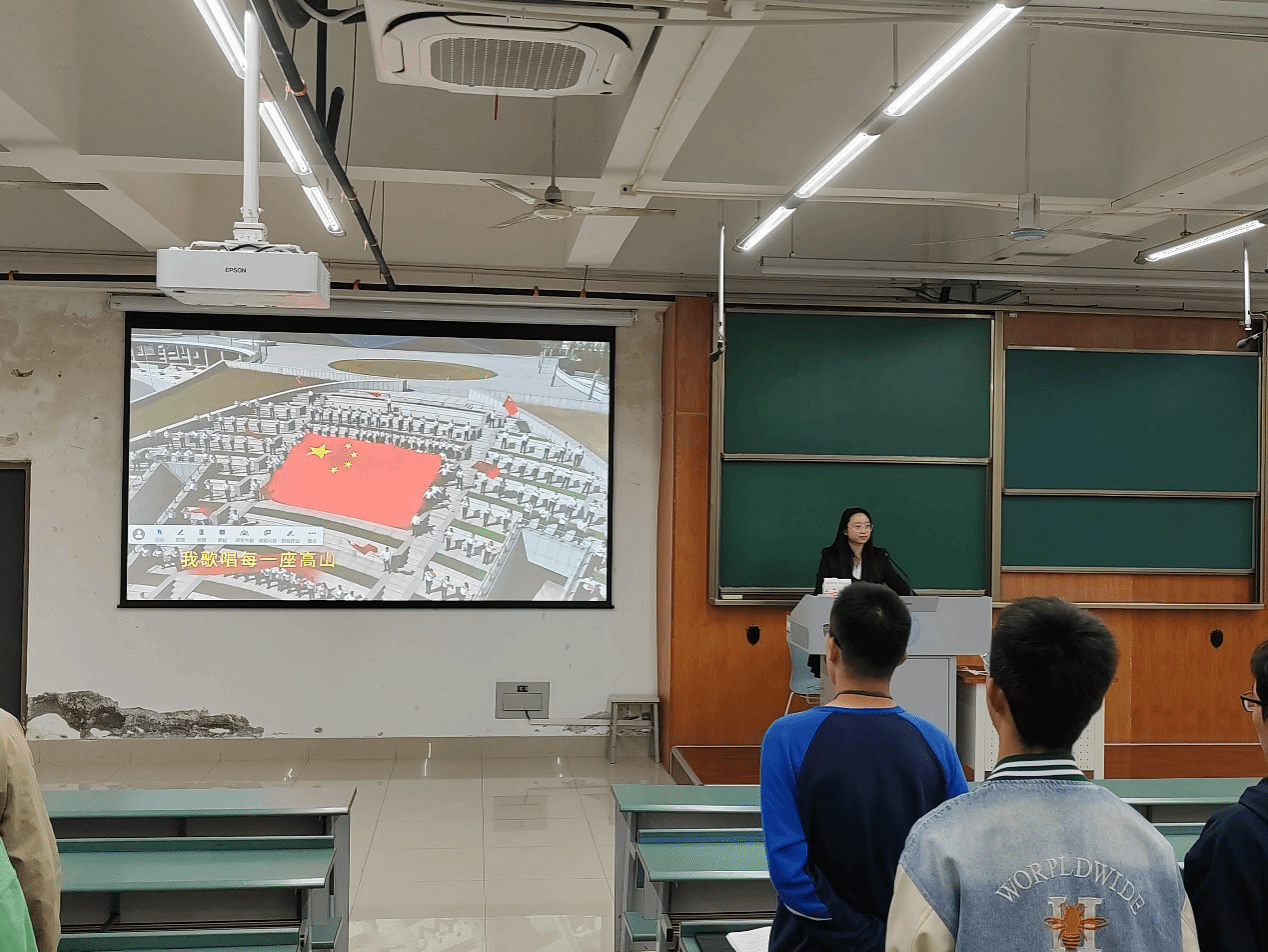在充分的学习后,同学们跟随相关视频齐声演唱红歌《我和我的祖国》。