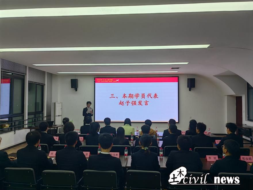 赵子强、骞骏骁同学上台带领“红志”全体同学庄严宣誓,“铭记兴我中华之责任,铭记土木百廿之历史;传承竢实扬华交大精神,发扬严谨治学土木传统……”,“红志”班学员的誓言经久不息,铿锵嘹亮。
