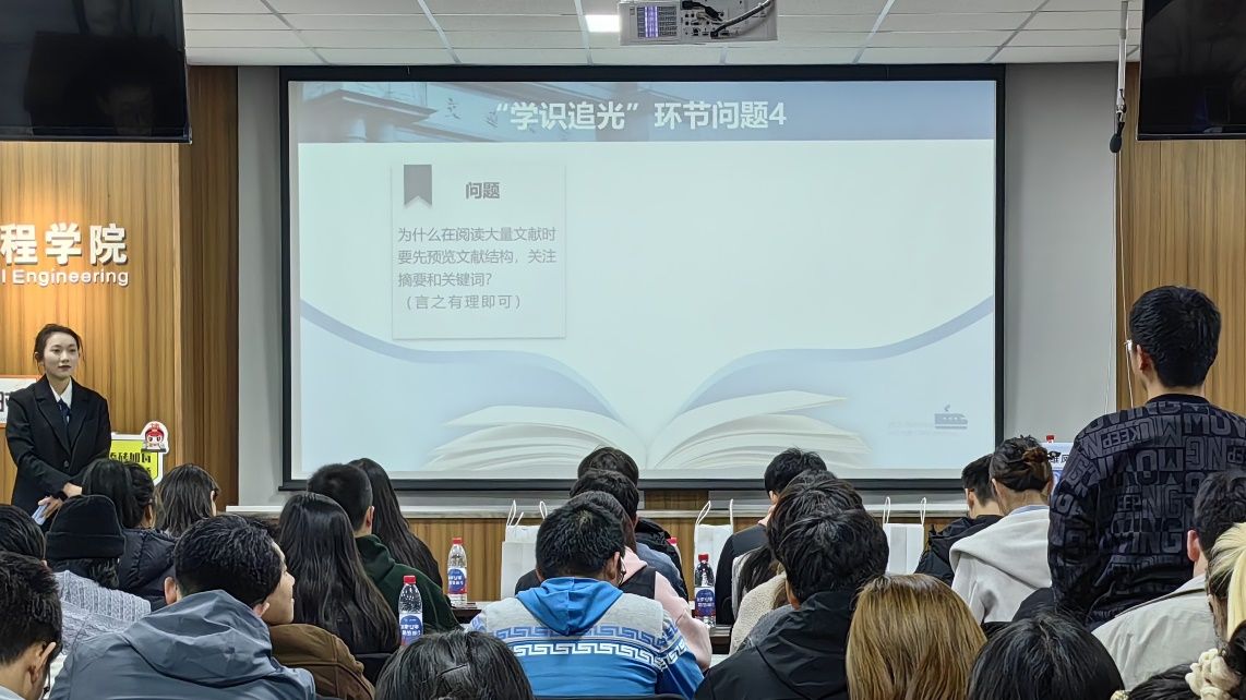 在Q&A之后是崭新的学识追光环节,同学们再次积极地举手回答PPT上的问题。经过朱维凤老师的细心演讲,同学们回答基本的学术问题显得愈发自信,皆能答中正确答案。