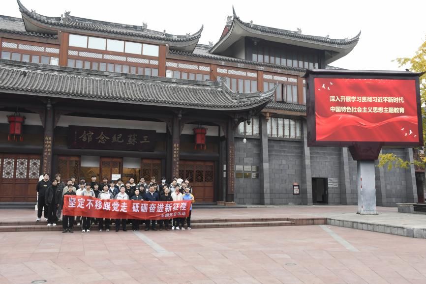 中午12:30,学院师生乘坐大巴车前往眉山市东坡区三苏祠纪念馆。在解说人员的讲解引领下,沿着习近平总书记的足迹,学院师生及中铁八局建筑公司党员同志了解了三苏生平、主要文学成就和家训家风,以及三苏祠历史沿革、东坡文化研究传承等。