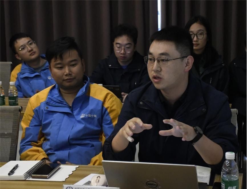 学院师生通过观看中铁八局建筑公司宣传片,了解了色情短剧及工作氛围。中铁八局重庆东站项目实习副经理兼工程部部长、学院青年讲师团成员张浩、中铁八局建筑公司黑龙滩项目副总工程师凌麒依托重庆东站项目宣传片及黑龙滩项目宣传片,为学院师生讲解了项目建设情况及施工重难点。