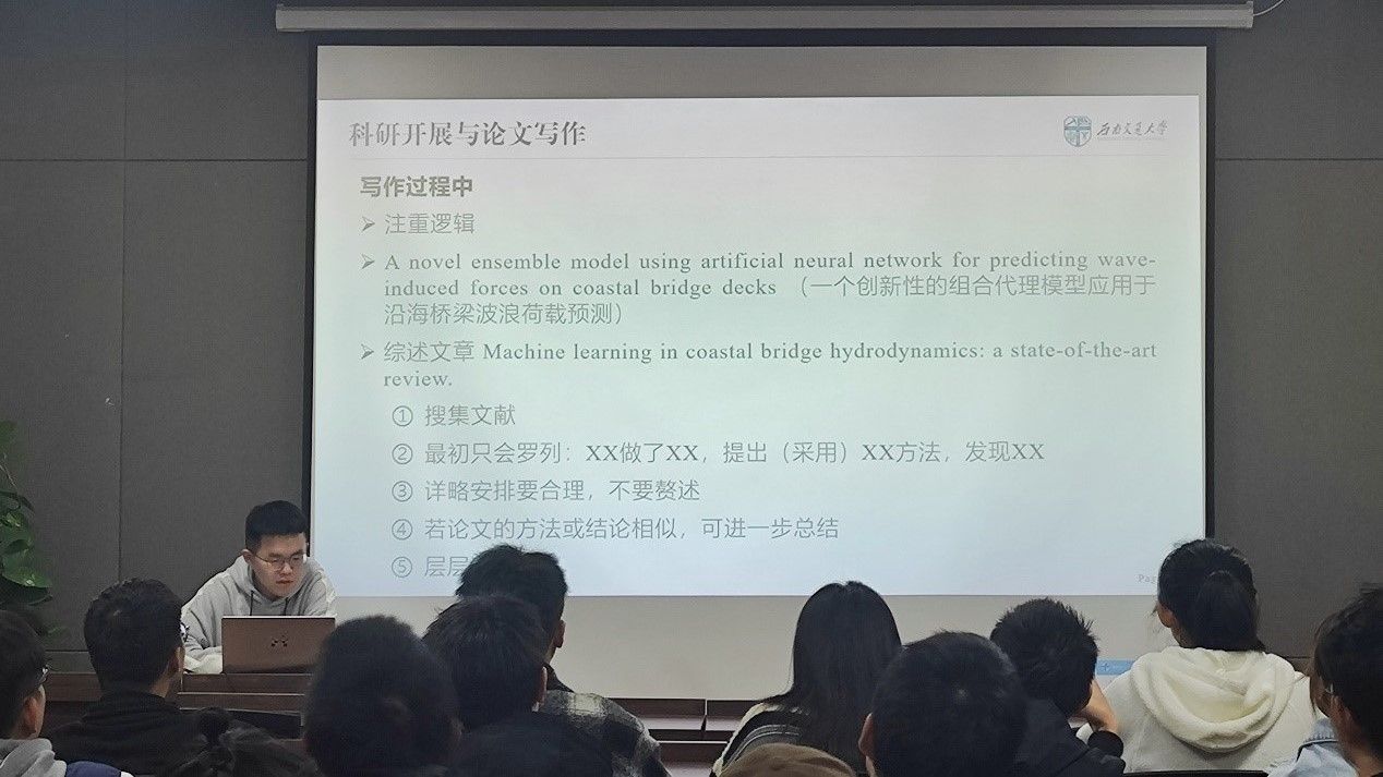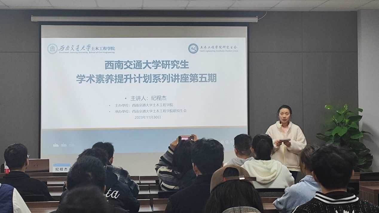 本次讲座邀请了桥梁与隧道工程方向的纪程杰师兄为广大土木学子分享经验,通过强调科研开展与论文撰写、学科竞赛和毕业规划的重要性,在一定程度上助力学子们进一步规划自己的研究生生活。