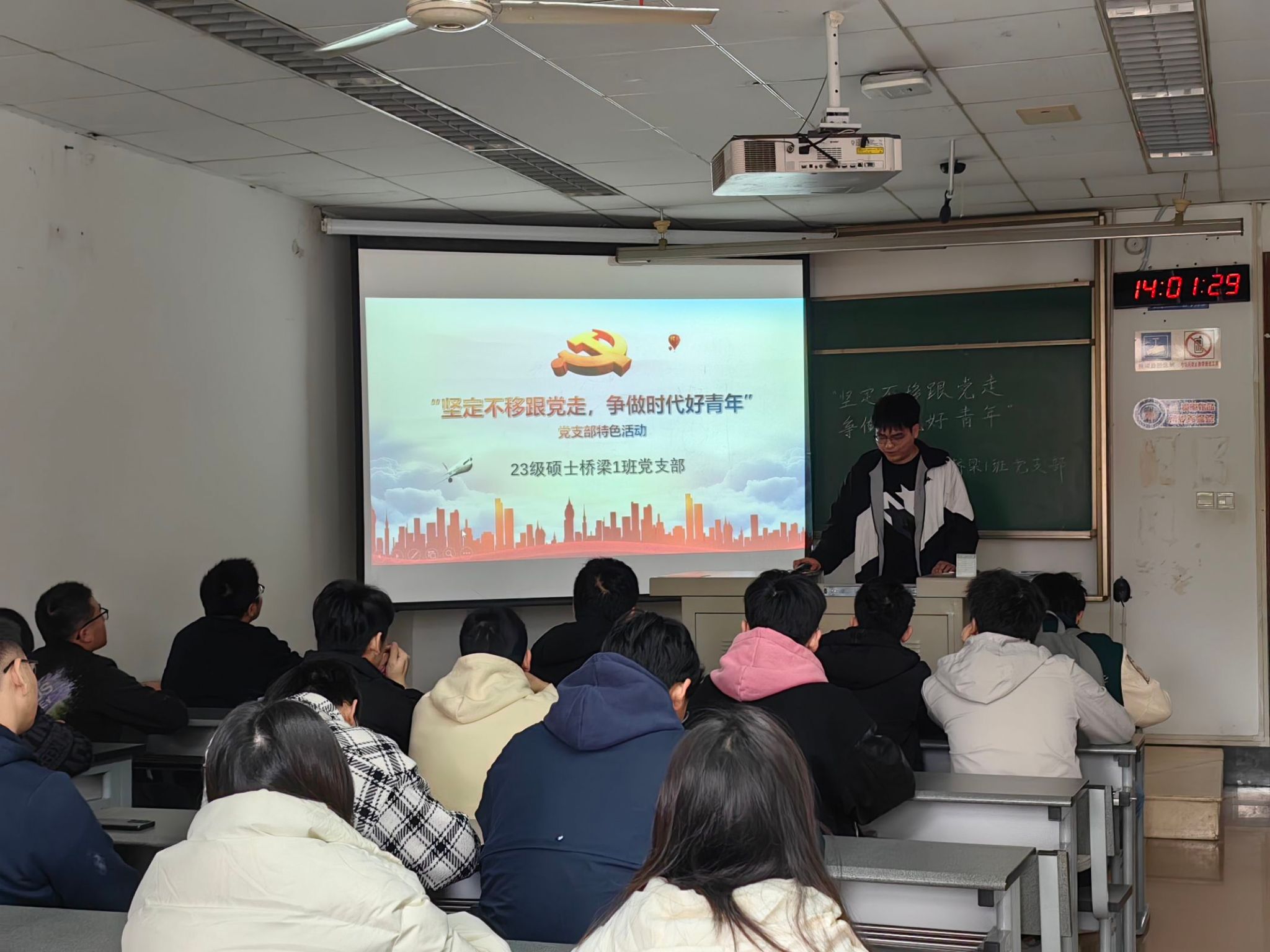 “坚定不移跟党走,争做时代好青年”校级示范性学生党支部特色活动,围绕交通强国、科研报国的主题,开展“强国建设,交通先行”党支部系列活动。