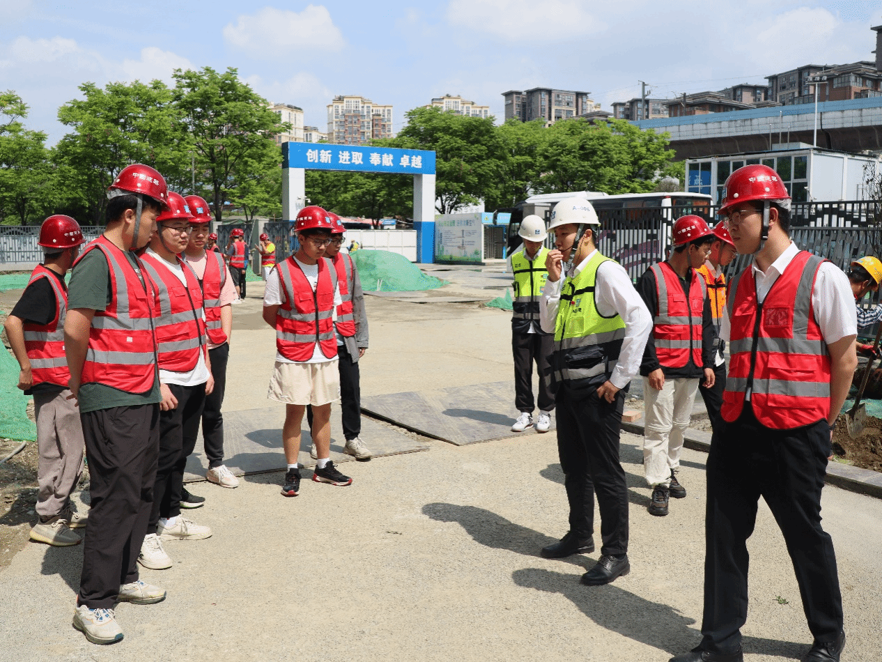 随后,同学们分成两组前往工程现场进行参观,了解项目施工的大致情况,项目现场负责人为同学们介绍了施工概况,讲解关键施工技术,并针对同学们的疑惑进行一一解答。
