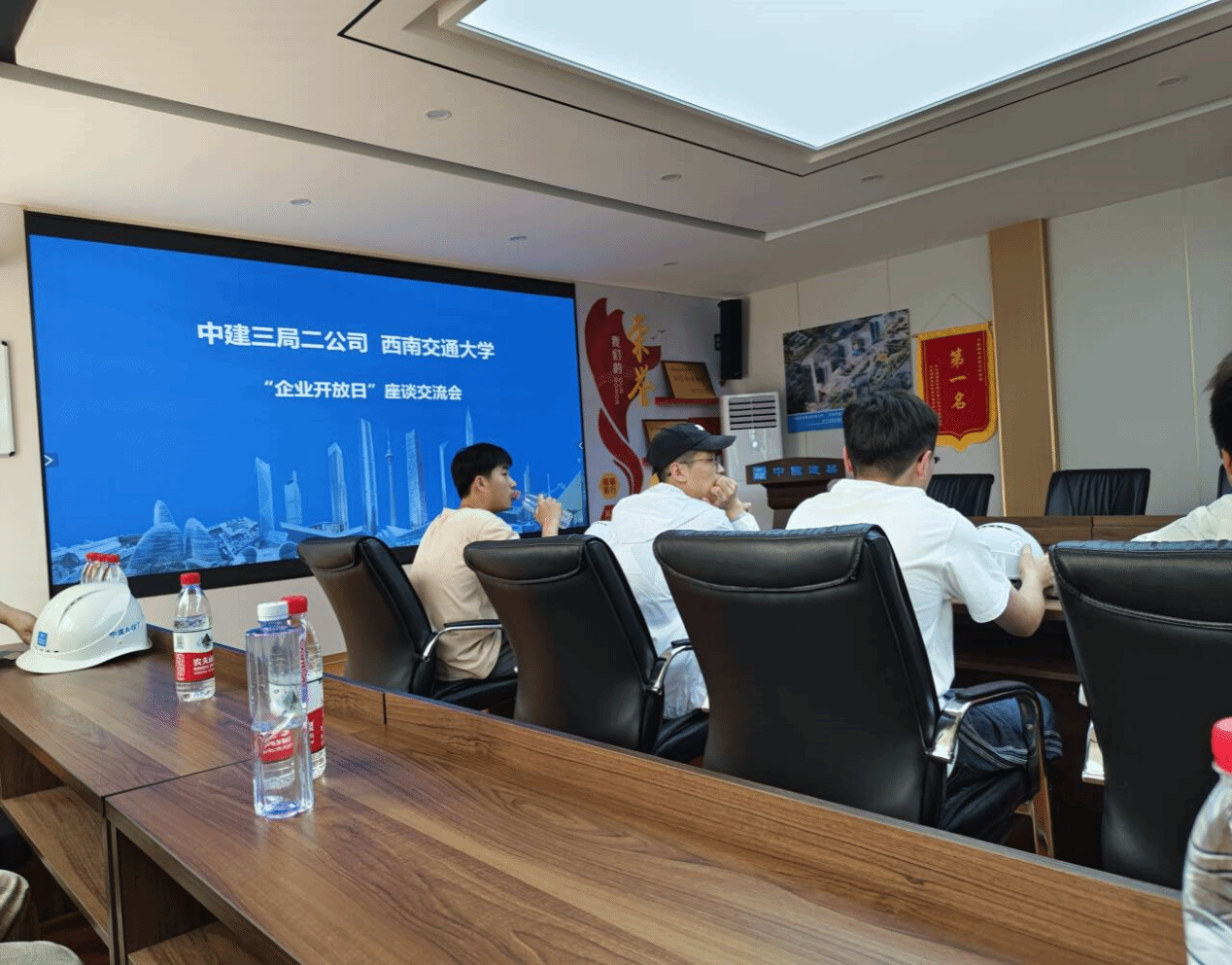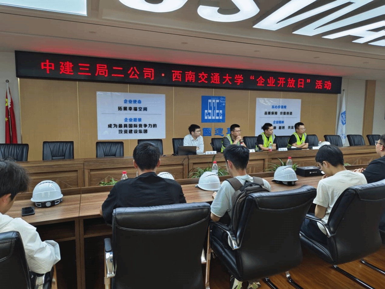 在参观结束后,同学们回到会议室,中建三局二公司人力资源部经理伍海桐为大家介绍了现场嘉宾领导,众多领导和老师出席本次交流会。会中,各位领导纷纷为同学们分享个人工作心得,色情短剧
