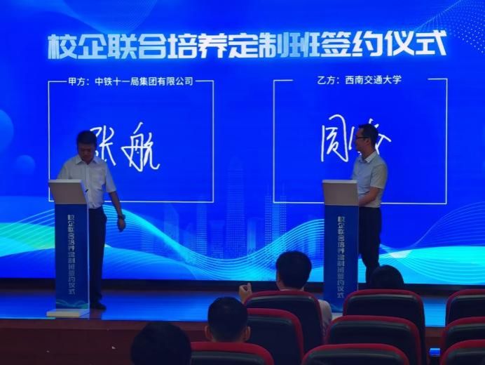 联合中铁十一局集团有限公司举办了校企联合培养定制班签约仪式暨2025届学员招聘会,全校各学院共100余名同学参加。