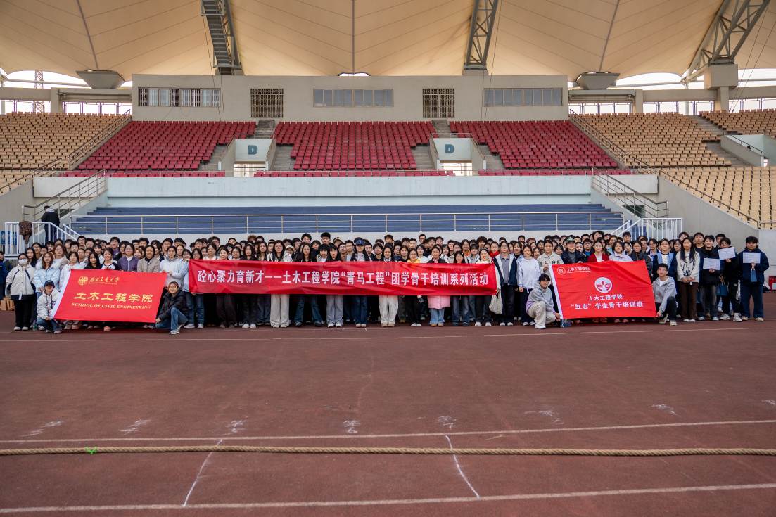 “青马工程”暨“新阶梯成才”初级班和“红志班”的全体成员,同时邀请到学院团学组织指导老师共同参与,百余师生们随机分为12支队伍,共同参与11项特色趣味项目。
