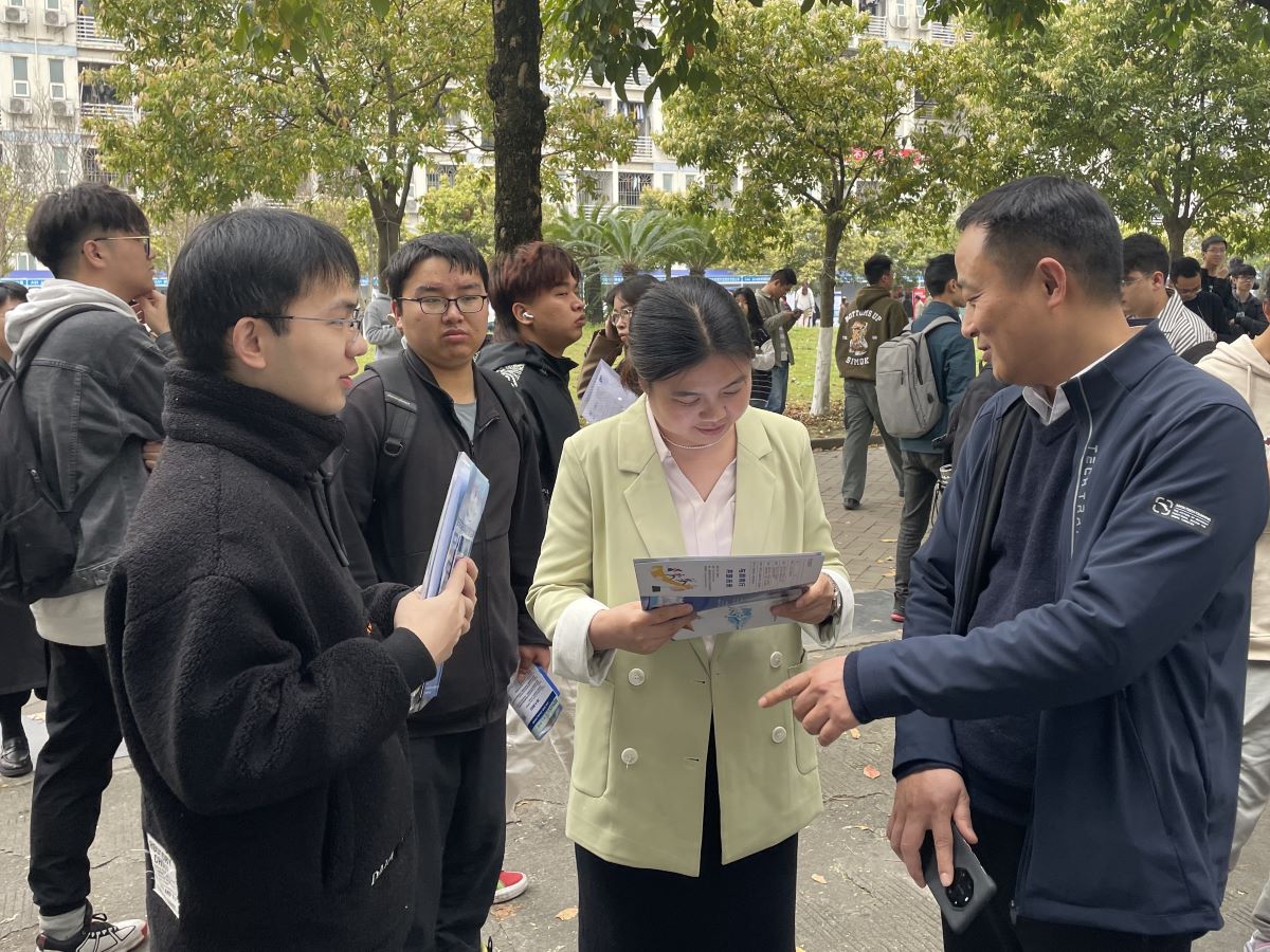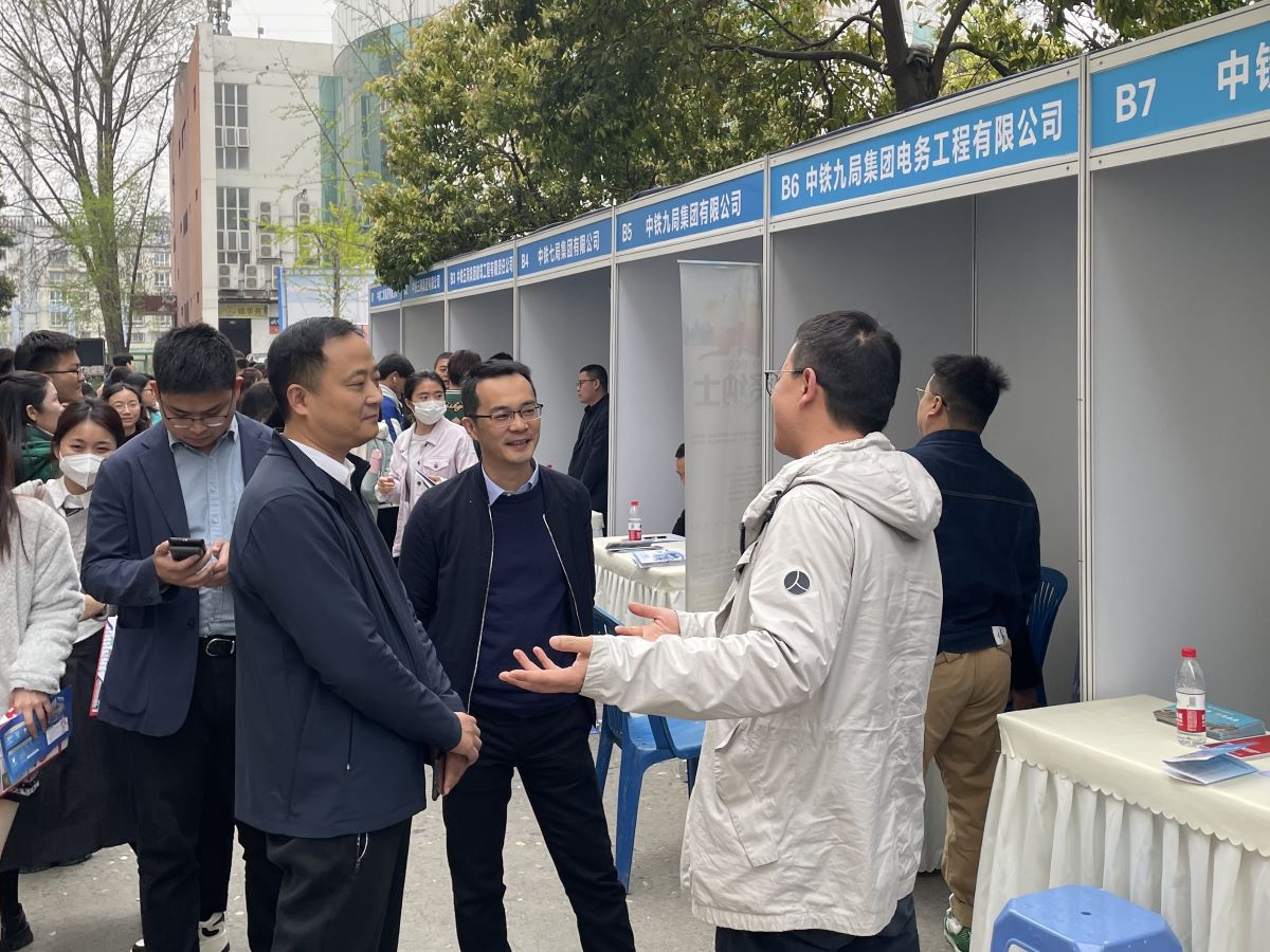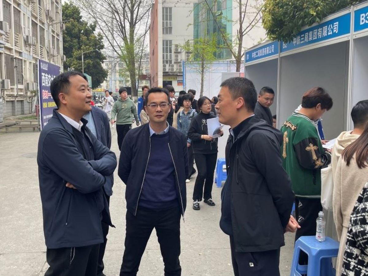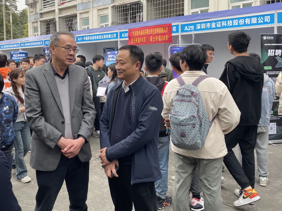 党委书记高平平,党委副书记周曦带领全体毕业班辅导员深入春季双选会现场。