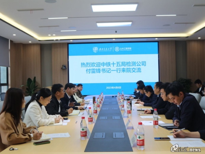 对中铁十五局检测公司一行的到来表示热烈欢迎,并对学院基本情况以及专业优势做了简要介绍,并表明此次交流旨在发挥学院“走出去,请进来”的特色,深化双方合作,促进深入交流。