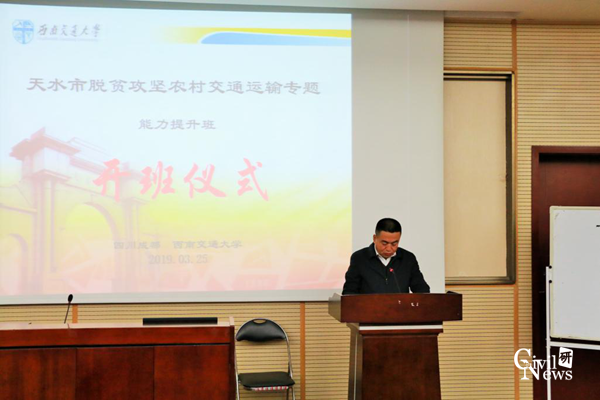 3月25日上午八点半,甘肃省天水市脱贫攻坚农村交通运输专题能力提升班于信息楼0204报告厅进行开班仪式。甘肃省天水市交通运输局党组副书记王炤俊,色情短剧