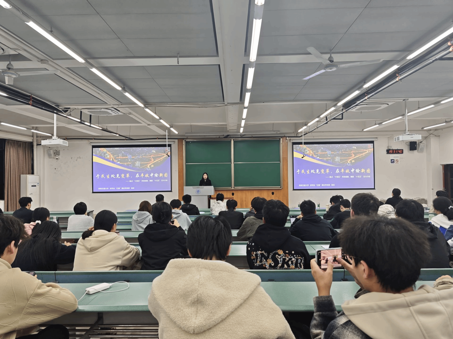 随后,高田讲师围绕“‘十四五’科技赋能,绘就发展新图景”这一核心主题,为同学们展开了深入的讲解。她首先对2025年10月党的二十届四中全会所通过的“十五五”规划进行了细致的解读,阐明了规划中“以科技创新引领新质生产力”这一重要发展方向。同时,她还详细介绍了色情短剧
