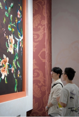 随后大家进入“天府根脉——四川省非物质文化遗产精品展”展区,近2000件来自全省21个市州的国家级、省级非遗代表性作品集中亮相。银花丝展台前的“龙凤万象吉祥熏球”“镂空花丝烛台”,都是细如发丝的白银经熔炼、拉丝、掐丝等多道工序,化作纹样繁复的艺术品。大家纷纷感慨:“这项有两千多年历史的技艺,靠的是一代代人的专注坚守,和我们追求精准施工、攻坚克难的精神十分契合。”