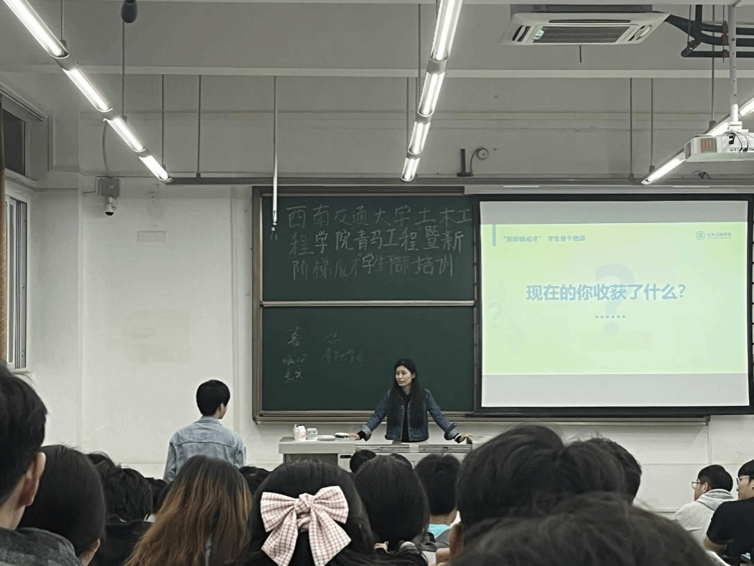 “青马工程”暨“新阶梯成才”学生干部培训初级班之“新生团学组织干事能力素质提升”课程在X4154教室进行。贾璇琦老师从端正心态、明确身份、提升能力和及时反思四个方面对如何做好一名学生干事进行经验分享。她在分享中指出,作为一名“新手”学生团学组织干事,在工作中遇到困难很正常,关键在于调整好自身心态,在工作过程中不断总结经验和及时复盘,敢于直面自己的不足,在一次次尝试中提升自己的是非判断力、组织凝聚力和任务执行力,争取成长为一名可靠、可信的优秀学生干部。