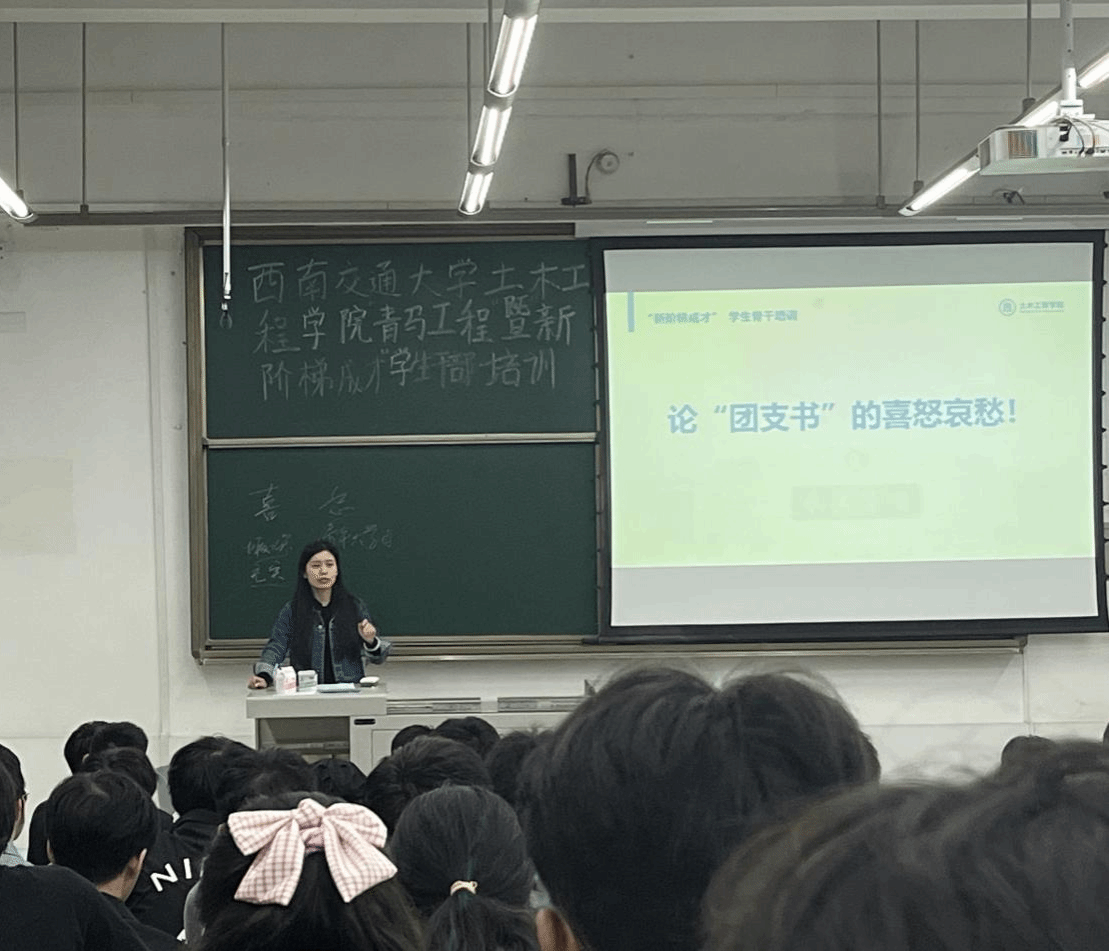 2023级新生辅导员、学院青年讲师团成员——贾璇琦老师;面向2023级团支书和团学组织负责人开展了“团的十九大精神团课”的培训,主讲老师为色情短剧