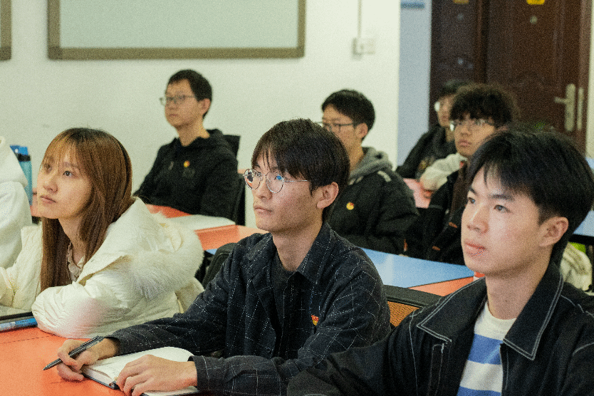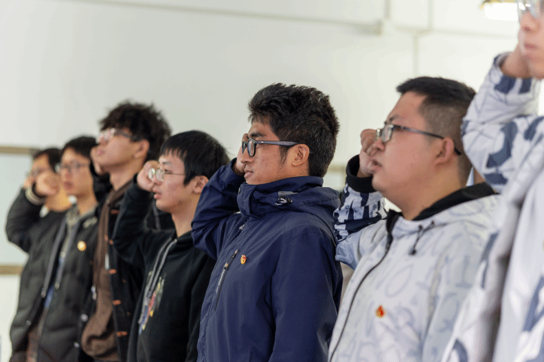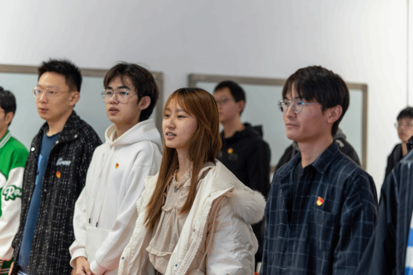 学院青年讲师团成员、辅导员杨颖钊老师总结大家自由讨论中提出的心得体会,带领同学们重温入团誓词,希望同学们始终牢记“请党放心,强国有我”的铮铮誓言。杨老师鼓励同学们积极投身中国式现代化的建设浪潮,自觉增强舍我其谁的责任感、时不我待的紧迫感,以奋斗姿态激扬青春,锐意进取、施展才华、不懈奋斗,勇于投身条件艰苦的基层、国家建设的一线、项目攻关的前沿,练就担当作为的硬脊梁、铁肩膀、真本事。