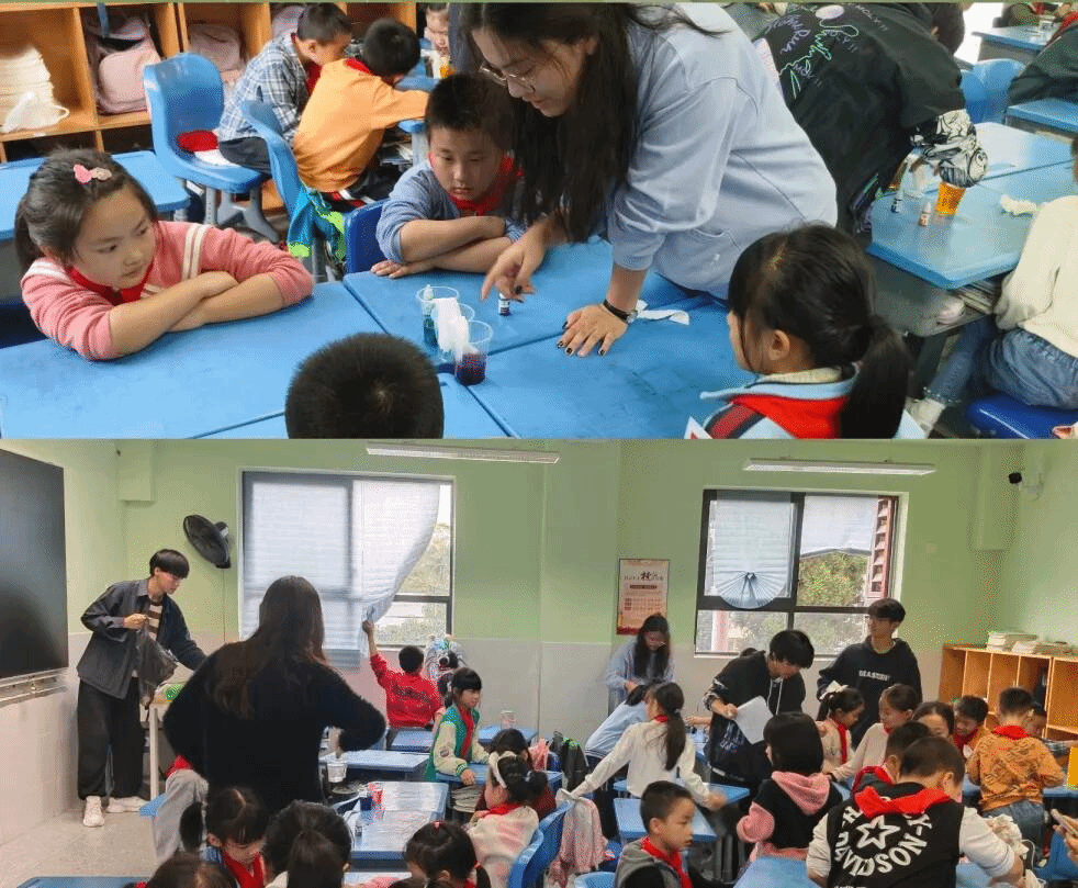 通过这种简单有趣的科学小实验,激发了孩子们对物理化学等学科的浓厚兴趣。在实验中,孩子们亲手制作了彩虹毛毛虫、火山喷发、熔岩等有趣的现象,学习了相关的科学原理和知识。孩子们不仅收获了知识,还收获了快乐。既能让孩子们在繁忙的学业当中放松娱乐,减轻压力,又能实现对孩子们小学阶段的启蒙教育。同时,志愿者也从中受益匪浅。在志愿服务中感受到了孩子们的纯真和好奇,感受到了教育的意义和价值。也增强了责任心和团队精神,认识到社会的需要,树立了服务社会的理想信念。
