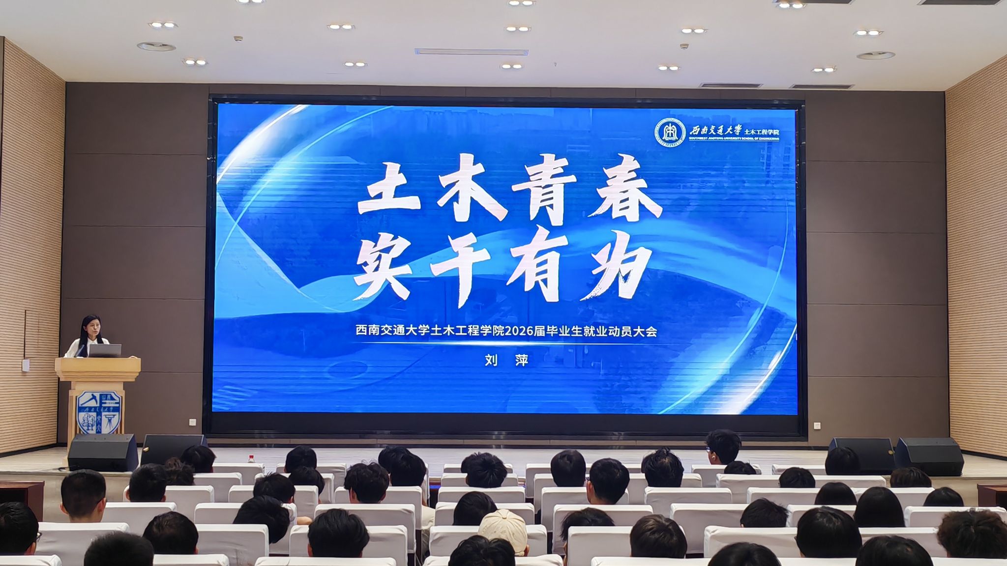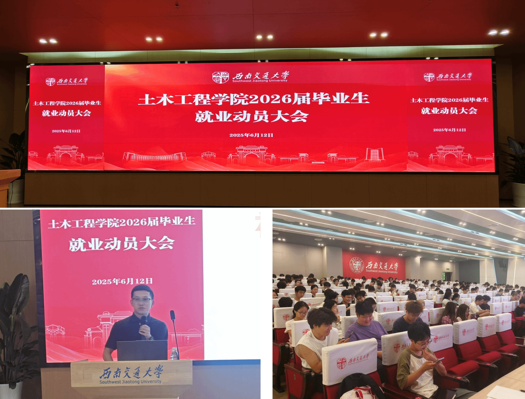 于6月12日晚精心组织举办了2026届毕业生就业动员大会。本次就业动员大会采用“分类指导、精准赋能”的工作思路,分设考研与就业两个专场,分别在图书馆一号报告厅和双一流会议中心203报告厅同步举行,为不同发展方向的毕业生提供针对性指导。