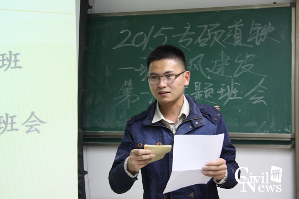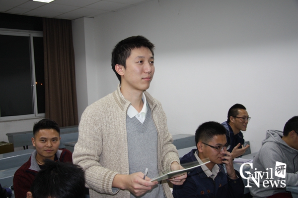 学期过半,同学们普遍反映研究生所学课程较难,上课很难跟上老师思路,尤其是弹性力学、数值分析、矩阵分析等课程。针对这种情况,班长建议成立专门的学习小组,每个小组专攻一门,然后以点带面,带动全班一起进步。并说到:“学校开展的‘创源’大讲堂等为我们提供了丰富的学习资源,望同学们多多参加此类活动,拓宽视野,紧跟学术前沿。”