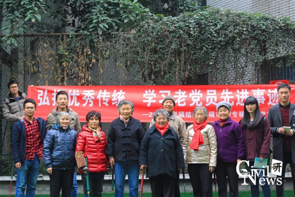 采访同学与老党员合影