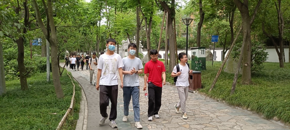 在完成四川博物院的观摩学习之后,桥梁二班又前往博物院附近的浣花溪公园,感受现实主义诗人杜子美的爱国情怀和文人风骨。通过公园里琳琅满目镌刻诗词的石碑,同学们学到不少知识的同时,也为诗圣高尚的爱国情操所折服。