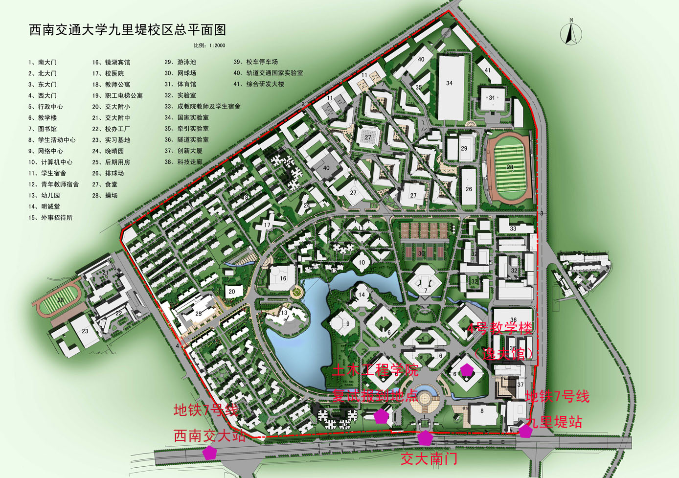 地铁:从成都东客站地铁站乘地铁7号线(迎晖路方向)经12站到九里堤站,D口出站可步行至学校,全程约35分钟;