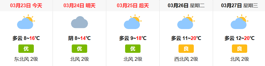未来几天内成都天气以多云为主,早晚温差较大,请同学们带好相应衣物。