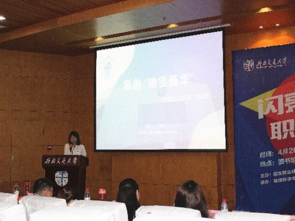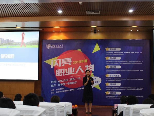 选手们都上台展示了自己的风采过后,台下的观众还显得意犹未尽,但是我们的活动也已进入到了尾声,地学学院团委书记周青老师做了总结致辞,并且告诫新一代交大人:学长学姐都成功找到了成功的钥匙,我们也要珍惜当下,不断探索,把握机会!是的,江山代有人才出,新一代的交大人应该要有长江后浪推前浪的昂扬斗志,直挂云帆济沧海的雄心壮志!