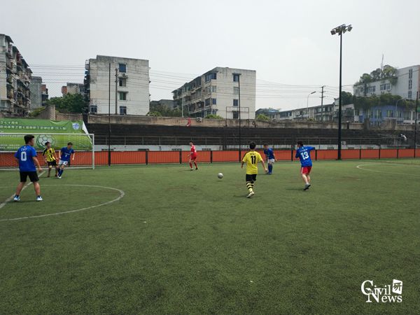 烈日下,隧道队和岩土队展开了激烈的角逐。上半场开始后,两边都稍显拘束,多为试探性的进攻,直至上半场结束两边都没能组织有效的进攻撕破对方的防线,0:0的比分也保持到中场结束。下半场开始,双方都转变了战术安排,适当放松了防守力量,增强了进攻。进攻端逐渐被激活,大家打得都更具进攻性,最终隧道队率先打破僵局,比分改写为1:0。随后,岩土队也逐渐组织有效的进攻,逼近隧道队的防线,一次次的逼近下,终于在离终场结束5分钟时攻入一球,最后1:1的比分保持到了比赛结束。