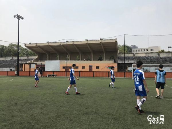 (九里校区)春季足球联赛高年级组的小组赛继续进行,今日共进行两场比赛,分别为岩土队对阵隧道队以及综合队对阵经管队。
