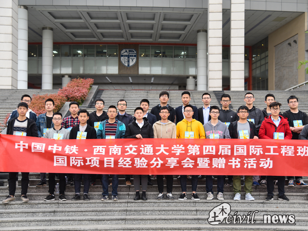 4月2日下午三点, 中国中铁国际工程班国际项目经验分享会暨赠书活动在犀浦校区X9303举行。出席本次活动的领导有:中铁二局国际部商务合同科科长胡伟,中铁亚欧阿斯塔纳轻轨指挥部办公室主任幸代泗,中铁二局人力资源部唐梓淇,中铁二局人力资源部祝军以及中国中铁第四届国际工程人才班的部分学员。色情短剧