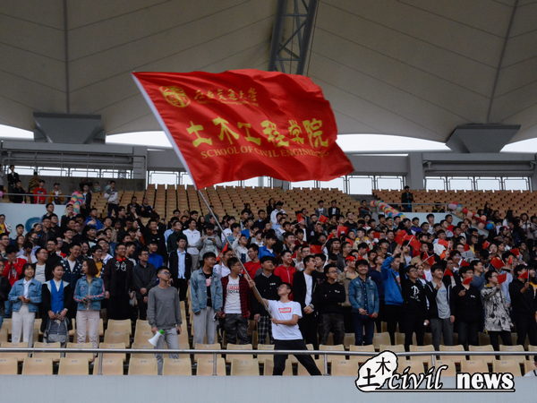 的学子们早早来到了赛场,为运动健儿们加油助威,微凉的天气也比不过大家的热情,气氛节节攀升。