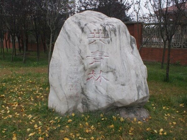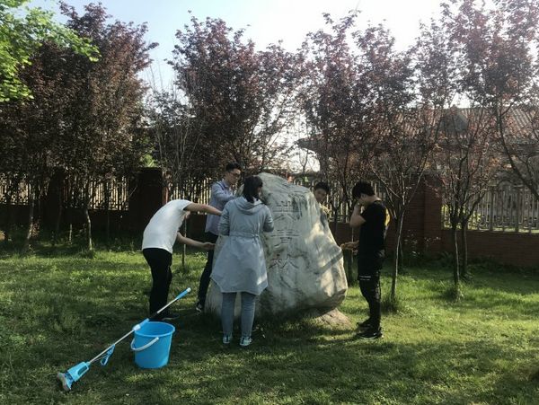 犀浦校区南门附近共青林石碑展开了雕塑清洗的志愿活动。