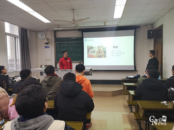 在班委的精心策划下,活动分为了几个不同的板块,充分让每一个人都能积极参与其中。活动一开始,岩土1班作为主办方,班长荆祥代表岩土1班发言,介绍了今天前来参加的班级同时对大家的到来致以热烈的欢迎,接下来荆祥班长向大家介绍了土木工程专业竢实扬华奖章获得者苏昂学长、土木工程学科特色以及历史上的土木工程大师们的事迹,听完荆祥班长的报告后,大家纷纷表示出了很大的兴趣以及对大师的敬畏。接下来经管1班和2班班长陆续作了精彩的报告,两个学科的交叉在报告结束之后达成了一定的融合,相互学习、相互借鉴,以人文精神为支撑,更好的助力科研研究。