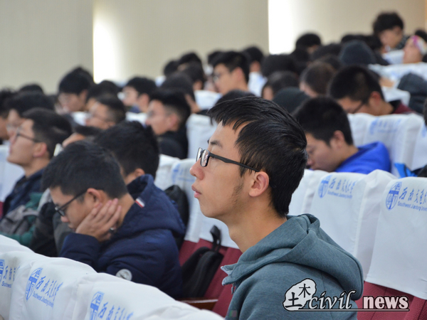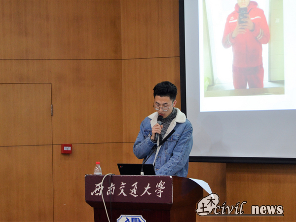接下来登场的李德斌老师则以“现实与理想之间”为主题开始自己的演说,他的表达活泼生动,并以幽默的方式传达自己的主旨。随后,他从三方面给同学们指出对待理想与现实的办法。“行动起来,实现梦想”,他用疯狂英语创始人李阳的成功之路佐证;“坚持不懈,调整心态”,他用工地实习的亲身体验说明心态的关键性;“爱自己,爱生活”,他以开玩笑的一句“以你对你男朋友女朋友或者未来男朋友女朋友的热爱作为标准”说明。最后,李德斌老师给同学们分享了金句:“努力培养你对生活、梦想与心态的热爱。”