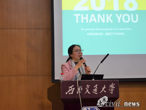 首先上场的是黄雪娇老师,在学生眼中和蔼可亲的她带来的演讲主题是“你的人生不设限”。她从自我突破与勇于尝试两个方面向同学们传达了人生不设限的理念。谈及“自我突破”时,黄雪娇老师讲述了一位08级交大学生的故事。他生活艰苦、经济困难,甚至在面试团学组织时屡屡碰壁,但却能够打破自我限制,主动寻求帮助,争取到实习机会,不断突破自我的他最后成功留任至主席团。之后他凭着这股韧劲,坚持勤工俭学,锻炼自我,实现了大学期间的经济独立,并获得诸多荣誉。在谈到“勇于尝试”时,黄雪娇老师例举了几个案例进行分析,特别是澳大利亚演讲家力克胡哲的故事,一个天生没有四肢的人,但却创造了许多奇迹。最后,她鼓励同学们要勇敢一点,敢于突破自我,敢于去尝试,不要给自己的人生设限制。