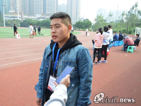 杨天同学是一名数据员,它主要负责将各参赛选手的成绩从秒表抄写下来做数据统计,记时类项目的总表和名次便是他们的手笔。在记者问及在工作过程中感到了哪些困难的时候,他表示:“由于记录数据统计是个很复杂的过程而且容错率为零,我们便需要时刻保持高度集中的精神,反复审查数据,为运动员们的努力给出公正可信的结果。但在这样的工作中,我们也一直保持着对于工作的热忱并且乐此不疲。”