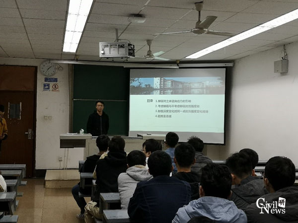 为动员全班同学积极参加学校组织的学术讲座,并培养同学们做学术报告和展示自我的能力。11月8号下午六点,2018级研究生岩土1班在九里校区逸夫馆4404B举行了以“学术报告交流会”为主题的班级PADP活动。活动由班长荆祥同学主持。
