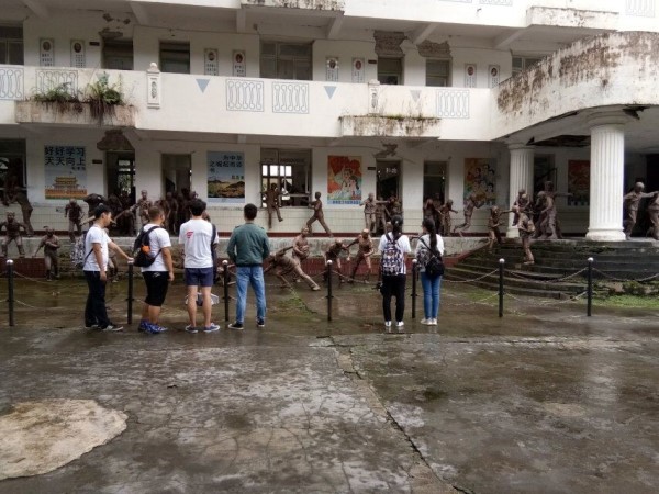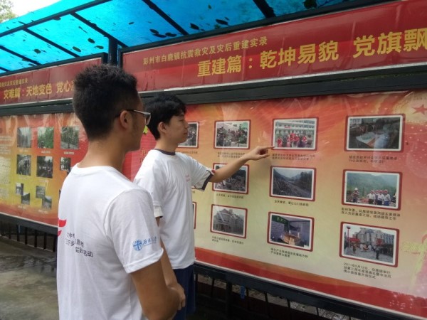 作为一个四川人,我相信没有谁会忘记08年的那次大地震,眼前的教学楼作为地震遗址被保存下来,看着的天心群雕的一座座栩栩如生的雕像,老师和学生的神情让我们联想到灾难来临时的恐惧。我们在宣传栏上看到了白鹿镇的重建历程。并采访了一位饭店老板,了解了在国家的大力帮扶下,白鹿镇是如何一步步复兴起来的,他讲的很激动,我们无不感受到一方有难八方支援的中华精神,也为他们感到衷心的快乐。
