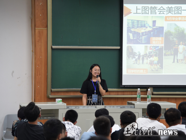 之后,书志图管会的贾艾藜同学为同学们详细介绍了图书馆学生管理委员会,并向同学们发出邀请。至此本次新生图书馆入馆讲座已全部结束并取得圆满成功。
