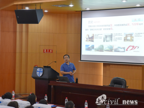 的院情,让大家深入了解到交大的精神文化与办学特色。何教授为同学们阐述了交大的渊源与发展。交大因铁路而诞生,伴随着铁路的发展而成长,122年始终秉持“灌输文化尚交通”的历史使命。